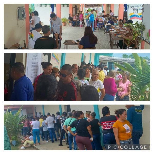 U.E. Manuel M. Carrasquero, más de 350 votos y alta movilización. Personas en cola, gestionando para disminuir los tiempos para el sufragio.