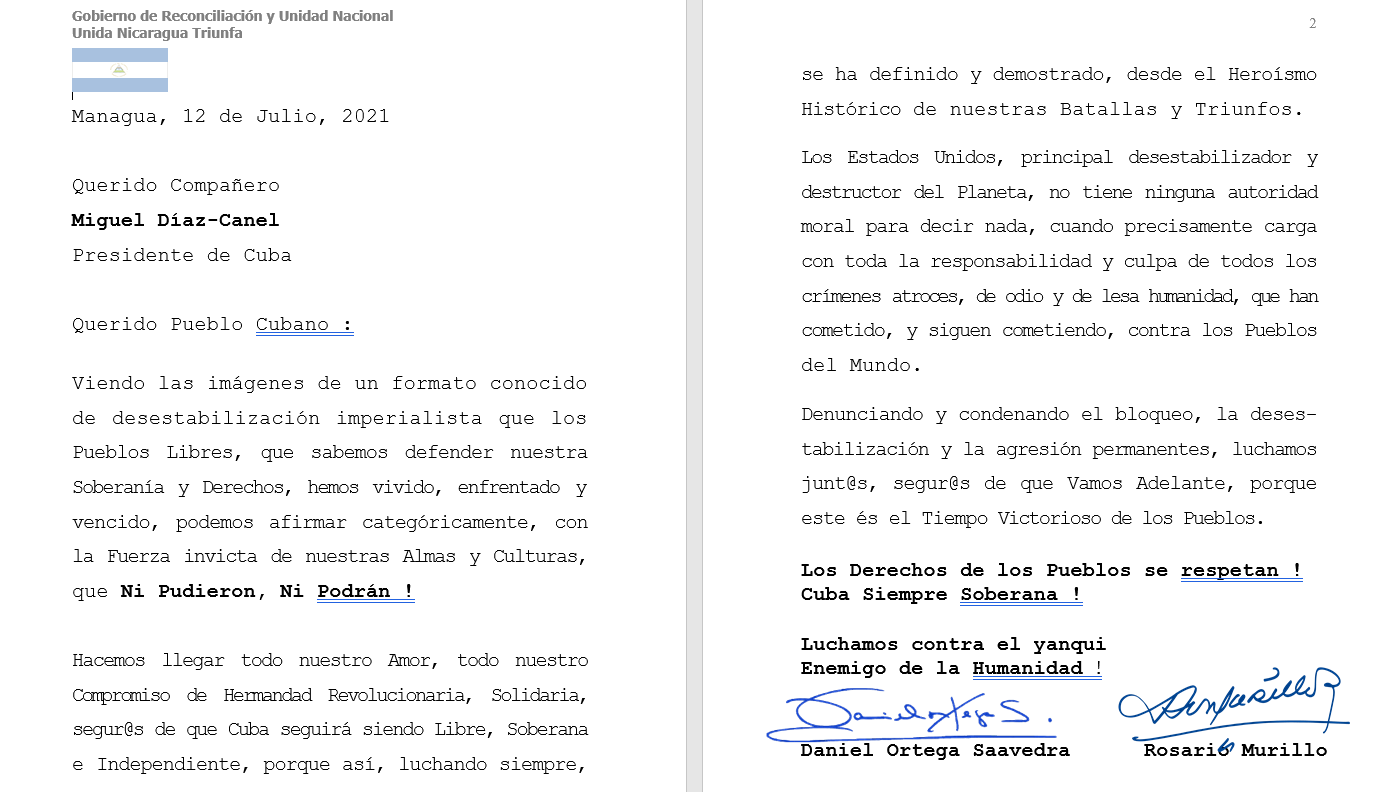 Desde el gobierno sandinista, igualmente, hacían público un comunicado de denuncia de la situación y de solicitud de frenar toda agresión contra los pueblos.